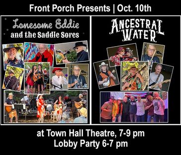 Front Porch Music Presents returns to Town Hall Theatre with a double-bill fundraiser on Friday, October 10 at 7:00 pm. All proceeds support sound and stage upgrades—so your good time fuels a great cause. Enjoy two dynamic Bay Area bands, plus a pre-show lobby set by John Vukelich at 6:00 pm. Now in its third year, the series has drawn over a thousand music lovers to the historic theatre. Tickets now on sale!